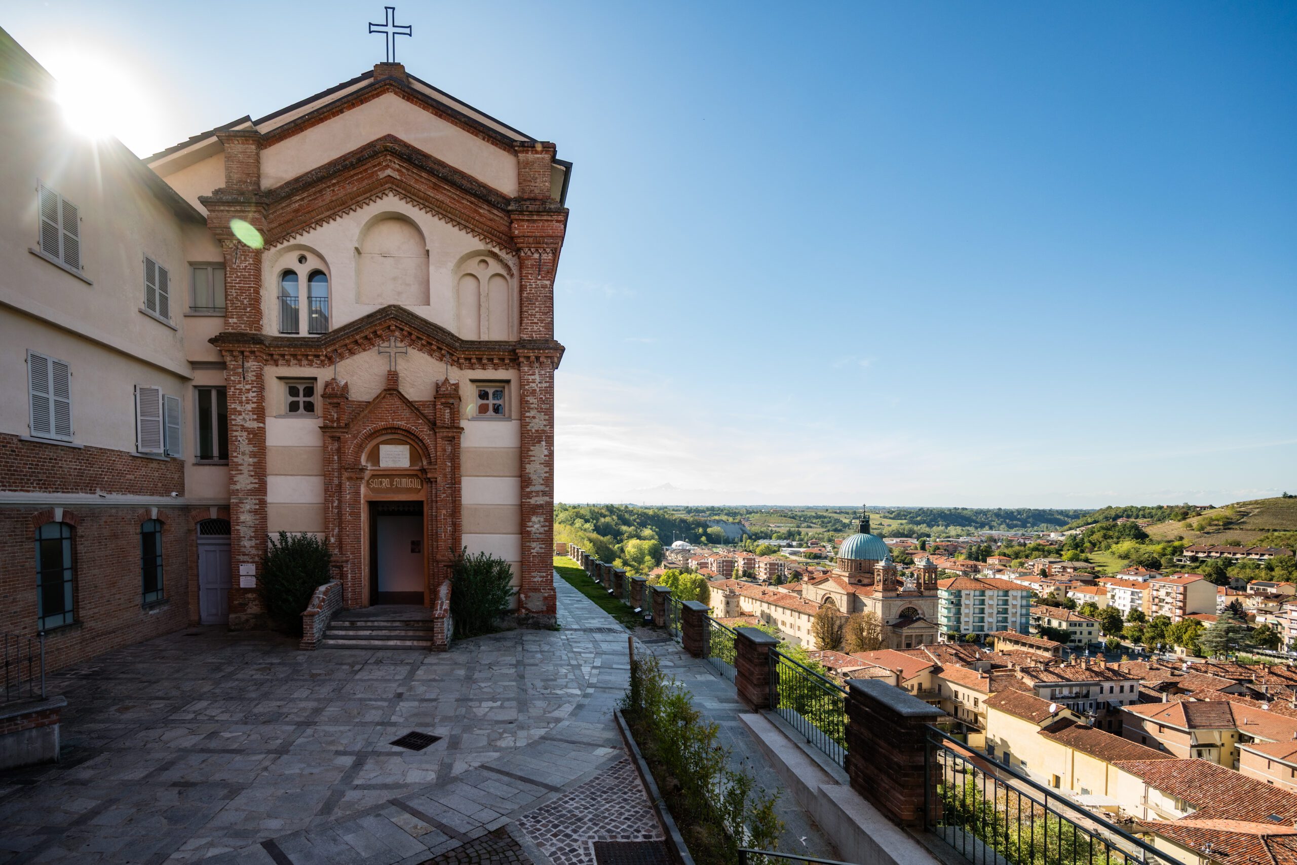 Il “Ritiro della Sacra Famiglia” è collocato nella parte alta di Dogliani, a Borgo Castello, e si affaccia sul belvedere dal quale si può godere di una bellissima vista sull’abitato e sulle colline circostanti. Il complesso, la cui costruzione risale al 1883, costituisce l’opera più importante di gusto neogotico realizzata da Giovanni Battista Schellino a Dogliani insieme al Cimitero. Ora convento, poi collegio per ragazze abbandonate, poi scuola, infine casa di riposo e ospedale di comunità, l’edificio ha sempre rappresentato un luogo che offre ausilio, cura e rifugio.